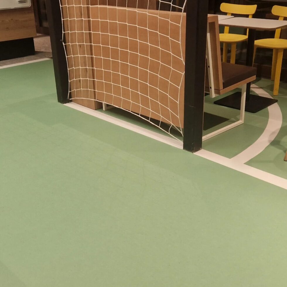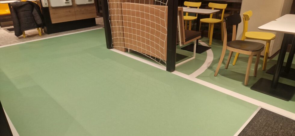 Ve známem řetězci rychlého občerstvení jsme realizovali pokládku linolea dle dodaného vlastního návrhu tak, aby seděl do konceptu provozoven.