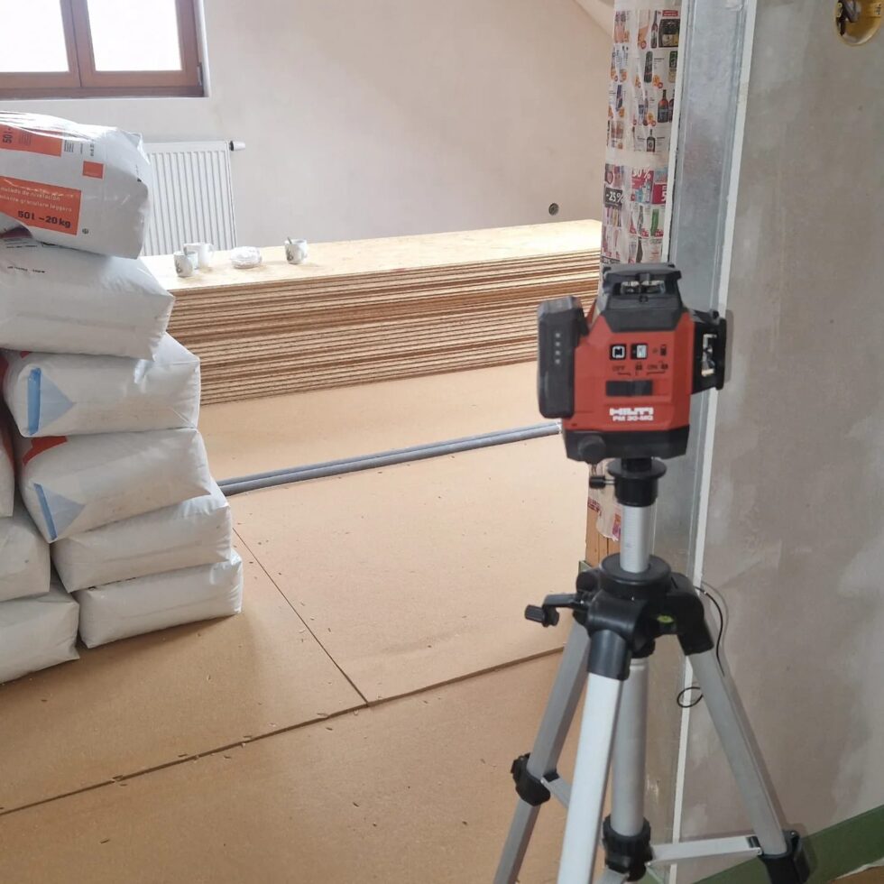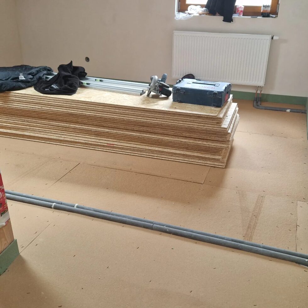 Vyrovnání podlahy a pokládka OSB desek ve dvou vrstvách